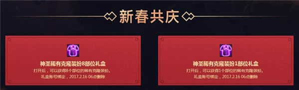 而在春节期间(2017.01.17~02.09)有活动,稀有克隆装扮礼盒限时添加。