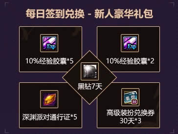 活动四,签到领取经验和黑钻。
