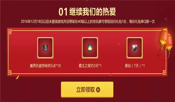 1.回归玩家即可获得各种奖励