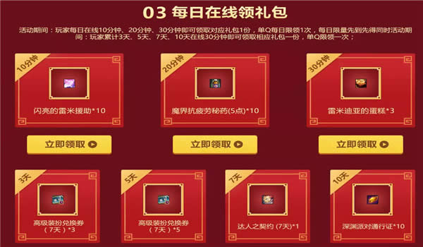 3.在线时长领取深渊票等道具福利