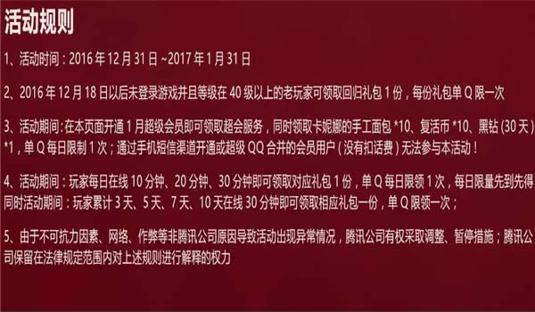 5、每个礼包仅限兑换一次(礼包每日有限,先到先得);Q币礼包每日限量,先到先得!