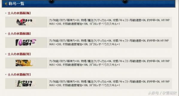 称号属性是四维+80,物理魔法暴击率+6%,攻速和移速+5%,命中+5%,没有释放,城镇移速+10%,最后一条是技能+1,四个称号不同的就是加的技能不一样。