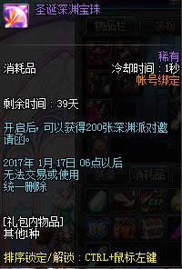 圣诞深渊宝珠账号绑定。开启后, 可以获得200张深渊派对邀请函。将于2017.1.17 06点删除。