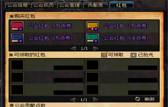 由于刚改版,可能一些数据还未及时恢复,导致公会部分功能无法使用,根据我个人预测,该功能应该是当有金主发红包时,在[可领取的]红包界面选择[可领取]来抢没有被抢完的红包,选择[已抢光]可查看已被抢完的红包。