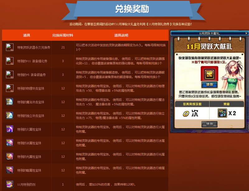 DNF11月灵跃大献礼活动地址 DNF11月特别礼物券领取地址
