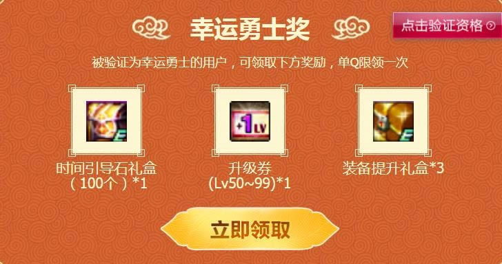 被验证为幸运勇士的用户,可领取下方奖励,单Q限领一次