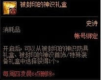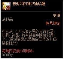 被封印的神识袖珍罐为帐号绑定道具,可随机开出一件100级史诗装备,每周四凌晨六点删除。