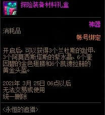 参与永恒的追猎活动能够获得一个材料礼盒,攻略是以这个材料礼盒为基础进行的疲劳值计算的,所以记得领取这个盒子。