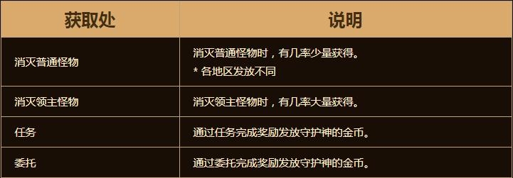 守护神的金币可以在NPC处购买各种材料及特别道具。