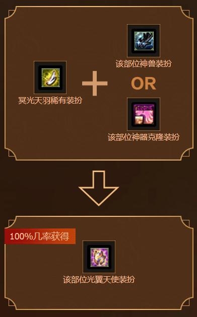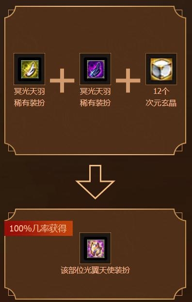 内,您可以用一件冥光天羽装扮和一件神兽或者神器