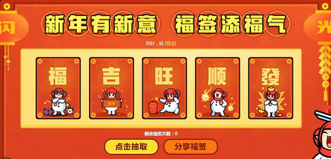 2、活动期间每个账号最多可获得3次抽签机会,且不会获得重复福签。