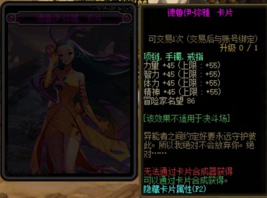 或许聪明的勇士现已发现了,当下这两种附魔距离太大,差价也太大,没有中心过渡的选项。好在放逐者山脉的推出处理了这个问题,在放逐者山脉中,勇士们能够获取德鲁伊·弥雅卡片,该卡片特点为四维+45,晋级至满特点后四维+55,而且该卡片等第为神器,晋级本钱简直能够忽略不计。
