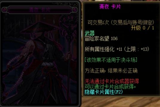 该卡片为兵器附魔,供给了全属强+11的特点,满特点则为+13的特点。