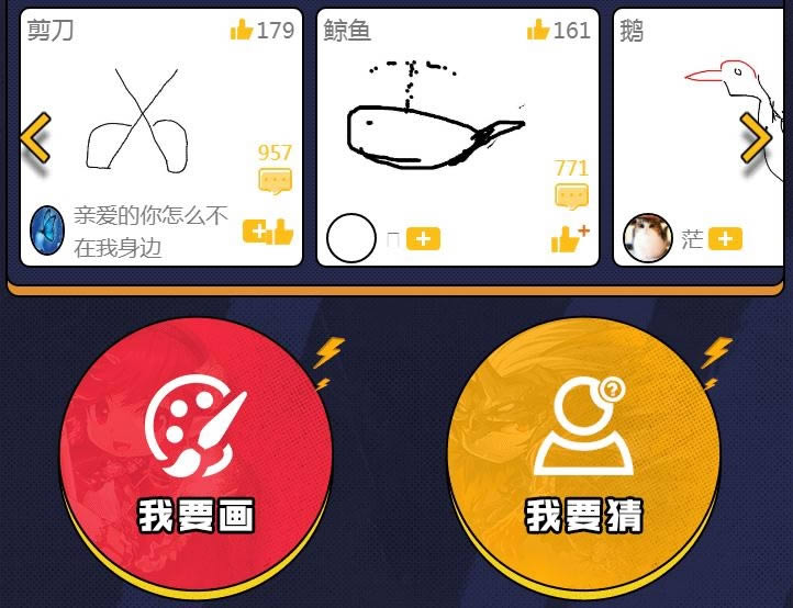 玩家进入活动页面后,可以选择我要画或我要猜选项来参与活动