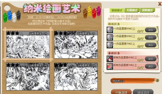 全部作品修复率60%和70%也有额外奖励。