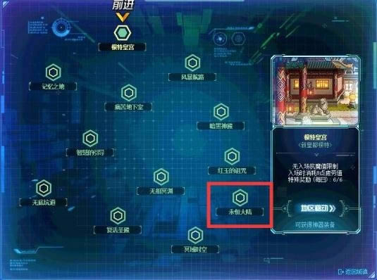 角色达到100级后,我们可接取事件任务“巨龙的秘宝”,完成多个NPC的剧情任务后即可开启永恒大陆地区。永恒大陆类似于复活圣殿,地区会出现在飞船的大屏幕上,点击后即可进行频道的跳转,同时特殊区域频道新增永恒大陆专属频道。