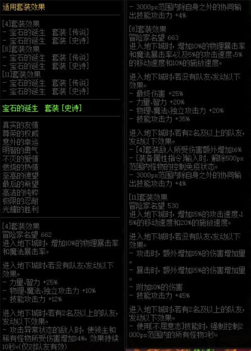 永恒大陆产出的8套辅助套装各自形成4件套、8件套和11件套属性,也就是小伙伴们除武器外可以全制作这些装备。