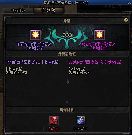 在NPC处,可将稀有级别的技能符文升级至神器级别技能符文,升级消耗100个[黑夜残息]+50个[堇青石]