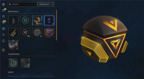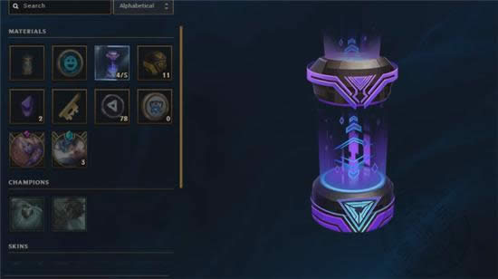 必定开出1个皮肤碎片和橙色精粹(至少50),有机会获得表情、宝石、海克斯科技限定皮肤碎片,售价48个代币。