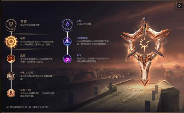 提莫队长正在待命,提莫的输出手段其实还是主要依靠平A,因此我们点出强攻作为基石符文,凯旋保证生存,欢欣加攻速,坚毅不倒能在生命值低的情况下造成更多伤害,毕竟提莫是最容易被集火的目标了,终极技能帽让你能够种更多的蘑菇,焦灼带灼烧效果,配合面具美滋滋。