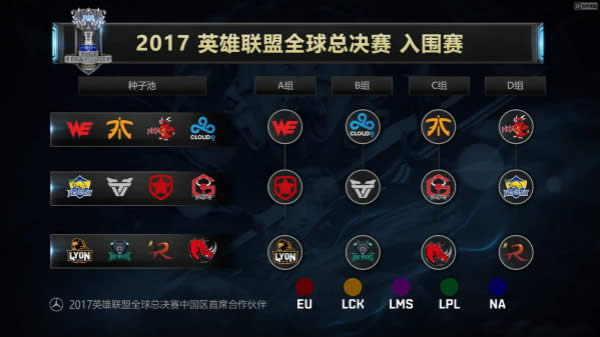 入围赛阶段,A组WE与GMB(原M5)时隔五年之后的再度交锋将成为组内的最大看点,此外LYN则是一支有着“拉美SKT”之称的队伍;B组、C组当中C9、FNC两支传统强队都将遇到各赛区冠军队伍的阻击;而在D组,土耳其豪门球队费内巴切的《英雄联盟》战队,将要遇到日本赛区冠军RPG以及由Tabe作为教练带领的HKA的围堵。