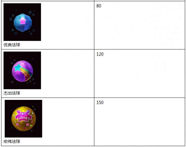 法球包含战利品,价格因规格而异:
