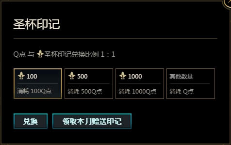 3. 使用Q点进行圣杯印记的兑换,比例为1:1