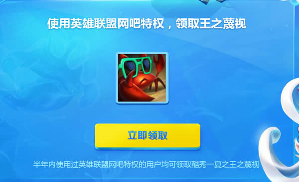 半年内使用过英雄联盟网吧特权的用户均可领取酷秀一夏王之蔑视