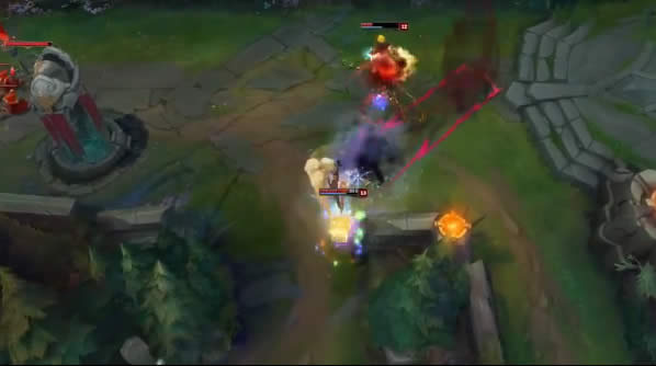 凯隐向前冲刺并在终点挥舞巨镰,造成物伤,对野怪有额外伤害。暗裔对非小兵目标造成百分比伤害。