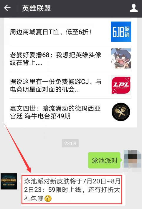 lol泳池派对新皮肤发布时间,2017泳池派对新皮肤有哪些英雄?今天小编在官方客户处得到回复!从官方回复内容来看,lol泳池派对新皮肤将于7月20日~8月2日23:59限时上线!