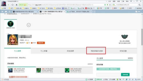3 . 点击查看[我的英雄与皮肤];