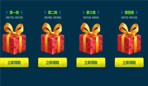 A:是的4周的奖励是一样的,但是每周只能领取一次。