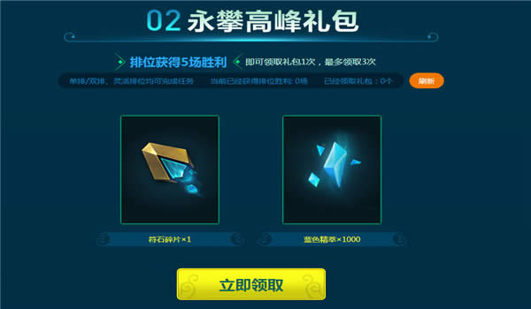 2.排位获得5场胜利即可领取礼包1次,最多领取3次