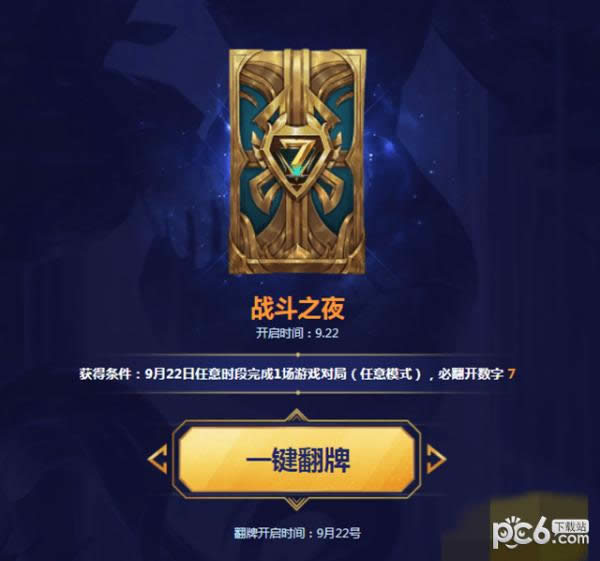 1.获得条件:9月22日任意时段完成1场游戏对局(任意模式),必翻开数字 7