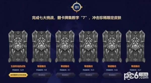 完成七大挑战,翻卡牌集数字“7”,冲击珍稀限定皮肤