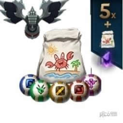 帝王蟹大礼包-包含5套置法球(每套包含上路、中路、打野、射手和辅 助法球各1个),1个宝石,1个螃蟹福袋,以及限定的美味饮品图标