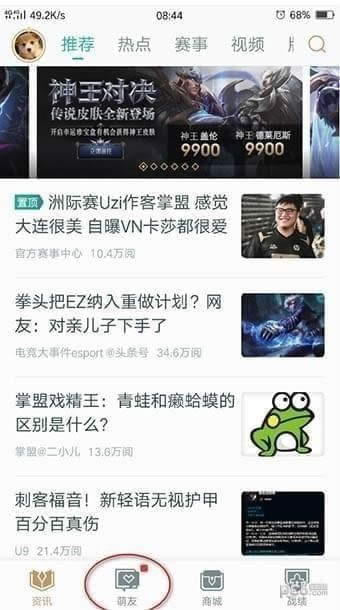 1.打开掌上英雄联盟小程序,点击最下面的盟友