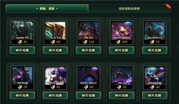 2.集齐指定数量的珍宝皮肤碎片可兑换下列道具。