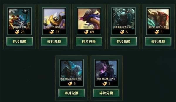 集齐指定数量的珍宝皮肤碎片可兑换下列皮肤。本期活动结束后,珍宝皮肤碎片仍将保留,可在下次珍宝盒开启时继续用于皮肤兑换