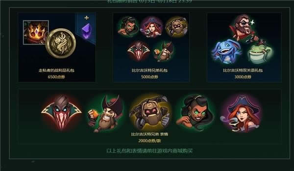 ※本期开启珍宝盒可能获得黑潮 弗拉基米尔、黑潮 黛安娜 、怨之砂 派克、血港鬼影 派克(英雄)、黑潮 弗拉基米尔(3天体验皮肤)、黑潮 黛安娜(3天体验皮肤)、怨之砂 派克(3天体验皮肤)、血港鬼影 派克(3天体验英雄)、或1~3个珍宝皮肤碎片。