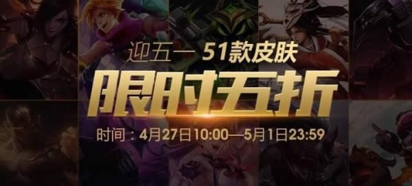 在4月27日-5月1日23:59期间以下51款皮肤将限时半价销售