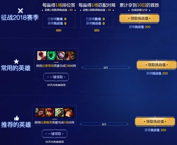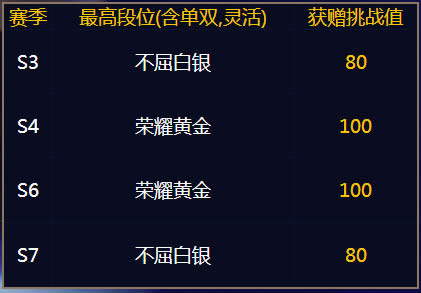 1 每个玩家会根据注册时间和历史赛季排位段位,赠送挑战值,具体可查看页面;