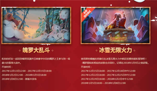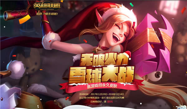 为各位带来lol无限火力雪球大战活动地址,参与到这次lol无限火力雪球大战皮肤领取地址的玩家朋友们将可以获得各种精美皮肤,下面我们就来看一看lol无限火力雪球大战活动吧,大家可别错过了。
