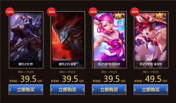 1.本次活动商品为:商城现在在售,并且上架超过3个月的皮肤,共452款。点击查看具体皮肤列表