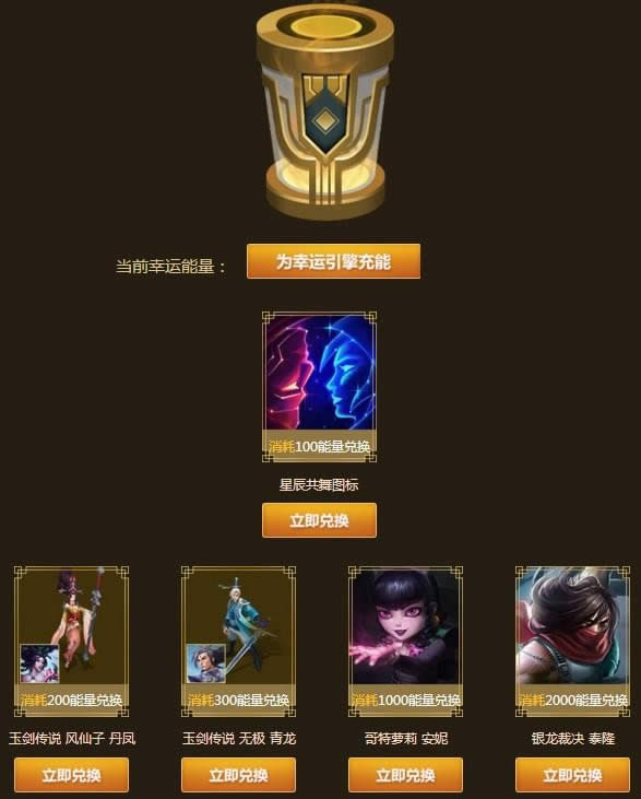 每开启一个蓝色/紫色 魔法引擎将为幸运引擎充能,消耗幸运引擎能量将可以直接兑换珍稀炫彩皮肤和限定皮肤!