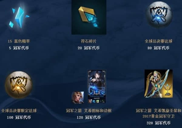 从9月22日起直到决赛翌日(11月5日),您可以通过完成2017全球总决赛任务或在10月24日后购买海克斯科技战利品礼包获得代币,代币可以用来打造活动图标,限定版冠军之箭 艾希载入边框、冠军之箭 艾希凯旋圣装等内容。