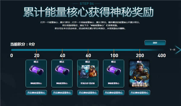 2.积分奖励领取后,请在下方“神秘能量核心”栏查看奖励。