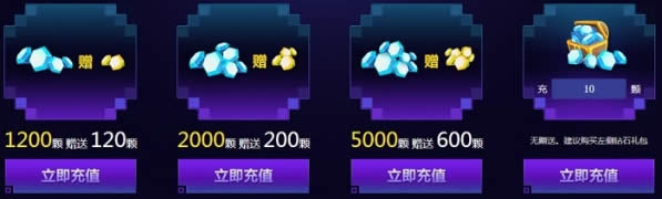 1.在活动页面上使用Q币充值钻石,1Q币充值10钻石。提供钻石礼包,分别是1200颗赠送120颗,2000颗赠送200颗,5000颗赠送600颗。购买其他数额钻石暂无赠送