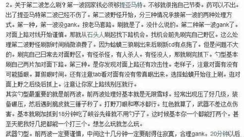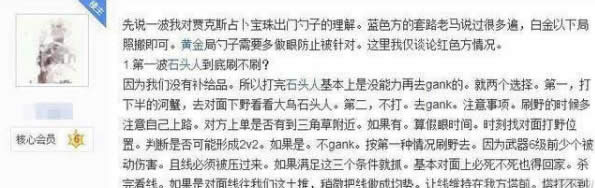 这位玩家还说出了他对勺型打野的很多个人理解。比如黄金局勺子需要多做眼防止被针对;第一波石头人到底刷不刷;刷野的时候多注意自己上路;对方上单是否有到三角草附近;关于第二波怎么刷等等。