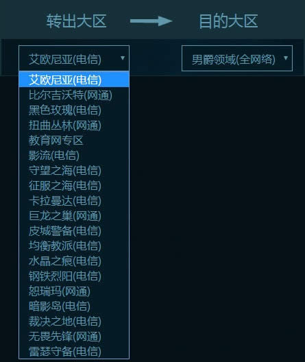 由于目前转区仍然处于小规模体验阶段,我们只开放了少数转出-目的大区组合,很可能没有你期待中的转区组合,请耐心等待,我们后续开放更多转区组合。